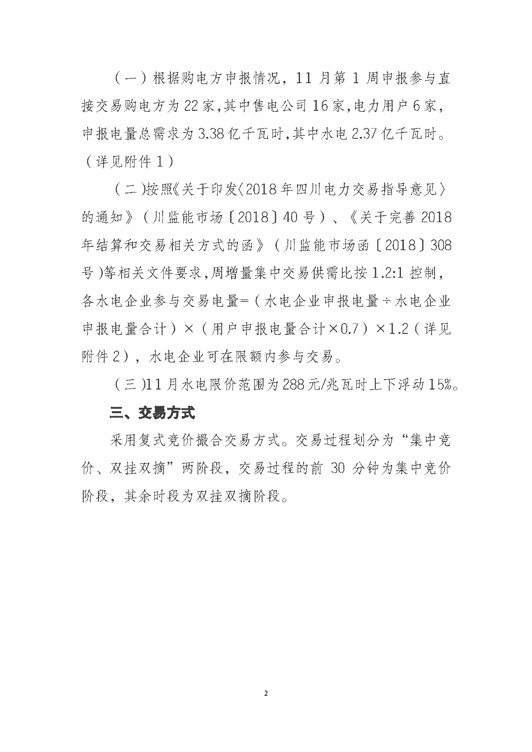 公告 | 四川關(guān)于開展2018年11月第1周直接交易的公告