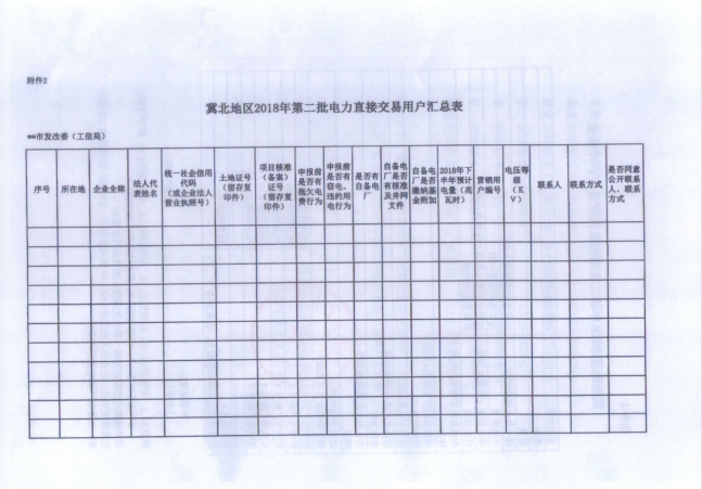 關(guān)于組織申報冀北地區(qū)2018年第二批電力直接交易市場成員的通知(冀發(fā)改電力[2018]704號)