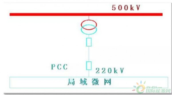 各集群微網通過220kV聯(lián)絡線實現(xiàn)環(huán)網連接,并通過220kV線路接入到500kV變電站220kV側,在500kV變電站設置1臺聯(lián)絡變壓器,實現(xiàn)整個微網的接入。通過500kV與公共電網聯(lián)接。