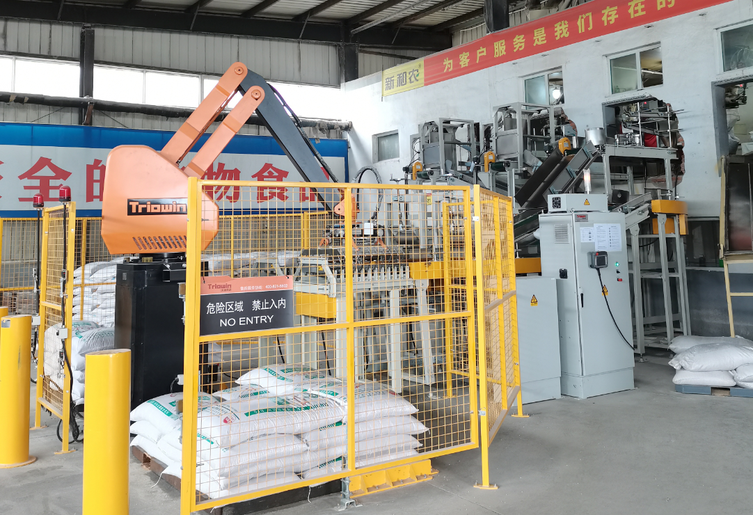 隨著國內(nèi)產(chǎn)業(yè)結(jié)構(gòu)調(diào)整,畜牧行業(yè)轉(zhuǎn)型升級(jí)、新常態(tài)發(fā)展機(jī)遇期,加上和農(nóng)牧業(yè)集團(tuán)的創(chuàng)新式發(fā)展,在生產(chǎn)車間成品接包區(qū)引入自動(dòng)化設(shè)備碼垛機(jī)器人。