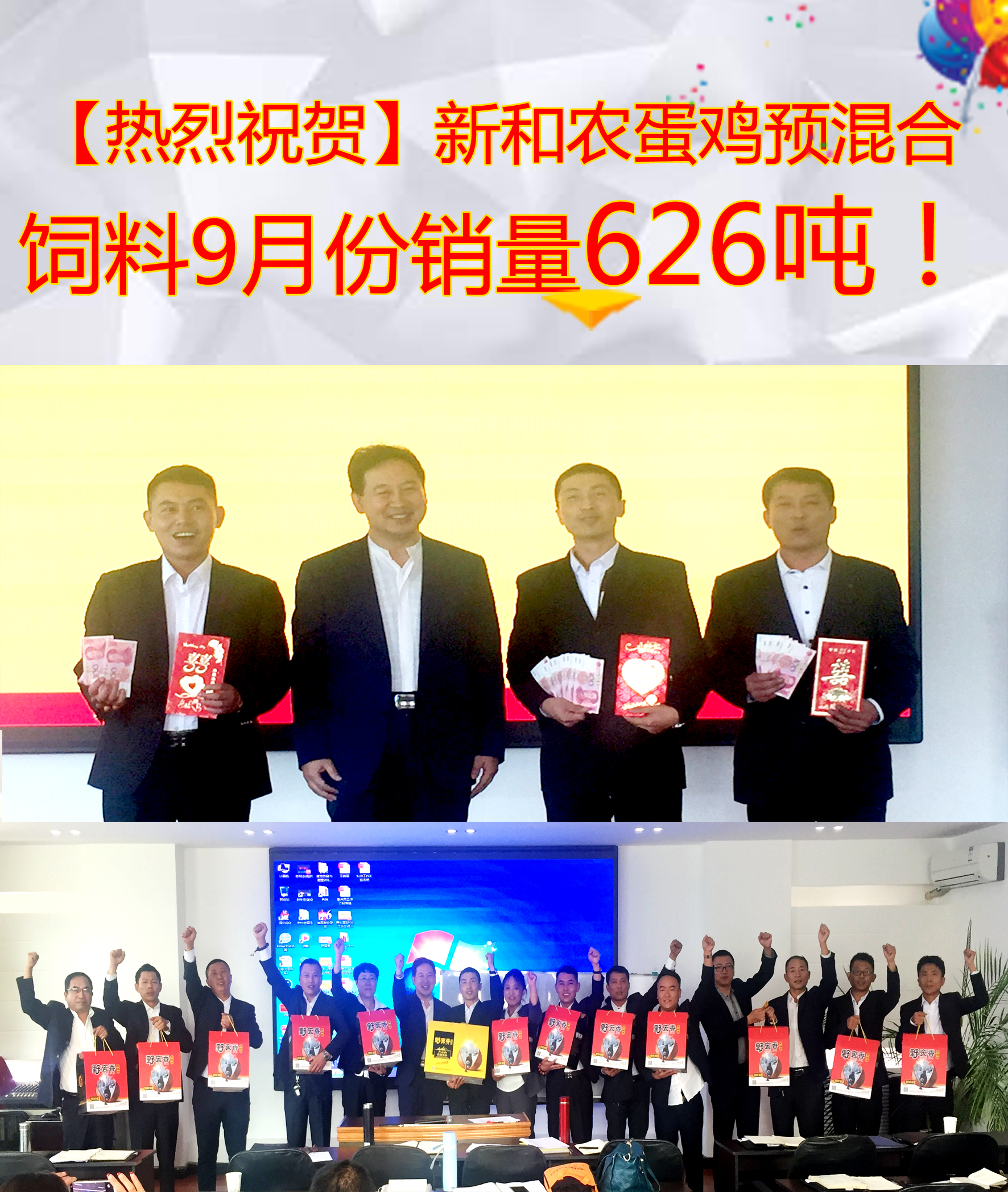 熱烈祝賀新和農蛋雞預混合飼料9月份銷量626噸