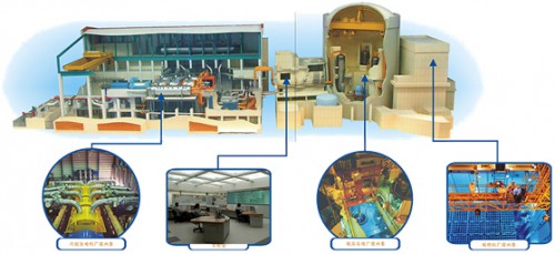 核電廠用的燃料是鈾。用鈾制成的核燃料在“反應(yīng)堆”的設(shè)備內(nèi)發(fā)生裂變而產(chǎn)生大量熱能,再用處于高壓力下的水把熱能帶出,在蒸汽發(fā)生器內(nèi)產(chǎn)生蒸汽,蒸汽推動(dòng)汽輪機(jī)帶著發(fā)電機(jī)一起旋轉(zhuǎn),電就源源不斷地產(chǎn)生出來,并通過電網(wǎng)送到四面八方。