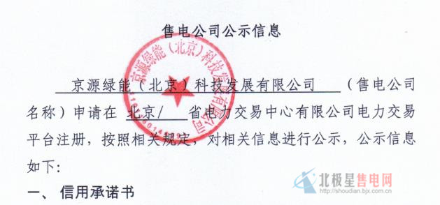 北京電力交易中心關于公示受理注冊的售電公司相關信息的公告