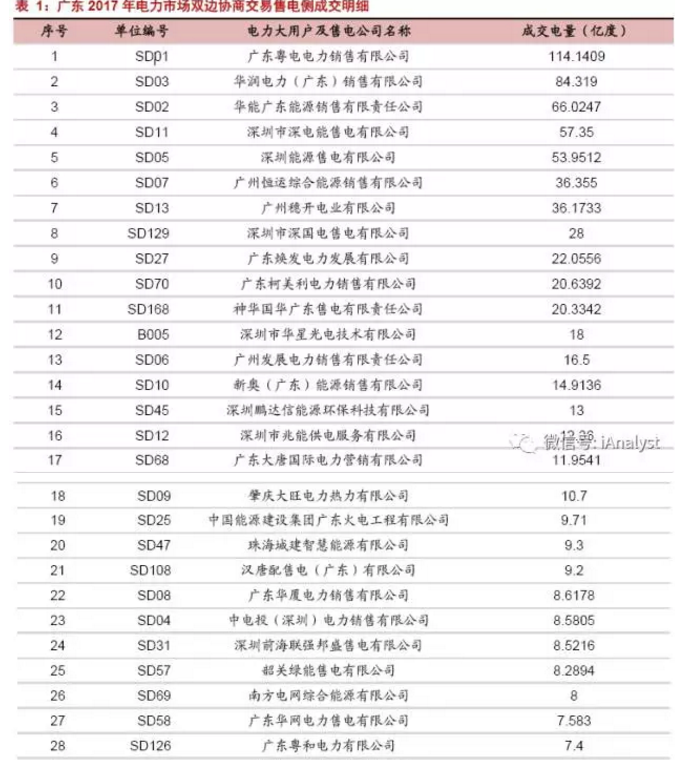 本次交易,售電公司成交總規(guī)模為815億度,占雙邊直接交易總規(guī)模的94%。其中粵電電力售電公司拔得頭籌成交量。