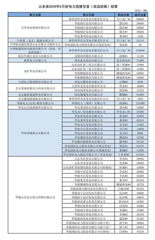 根據(jù)山東省電力直接交易工作安排,山東電力交易中心組織開展了山東省2018年3月份電力直接交易(雙邊協(xié)商)。42家統(tǒng)調(diào)發(fā)電企業(yè)(70臺發(fā)電機組)