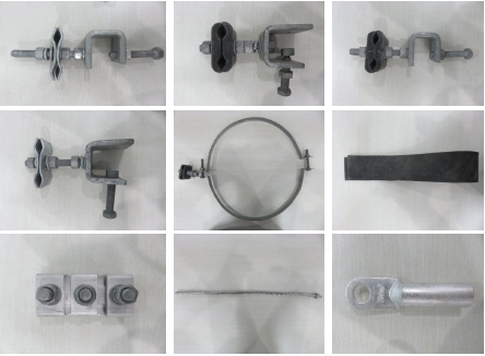 結(jié)合實(shí)際需要,現(xiàn)場(chǎng)采用的施工材料自行研制,涉及抱箍、絕緣橡膠、尼龍螺栓、鋼芯鋁絞線及絕緣線夾等。自行研制的金具如圖6所示。