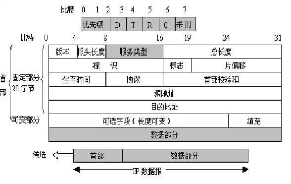 一個IP v4數(shù)據(jù)報由報頭和數(shù)據(jù)兩部分組成,其中數(shù)據(jù)包括高層需要傳輸?shù)臄?shù)據(jù),而報頭是為了正確傳輸高層數(shù)據(jù)而增加的控制信息。報頭的前一部分是固定長度,共20字節(jié),是所有IP數(shù)據(jù)報必須具有的。在報頭的固定部分的后面是一些可選字段,其長度是可變的。下圖給出了IPv4數(shù)據(jù)報的格式義。