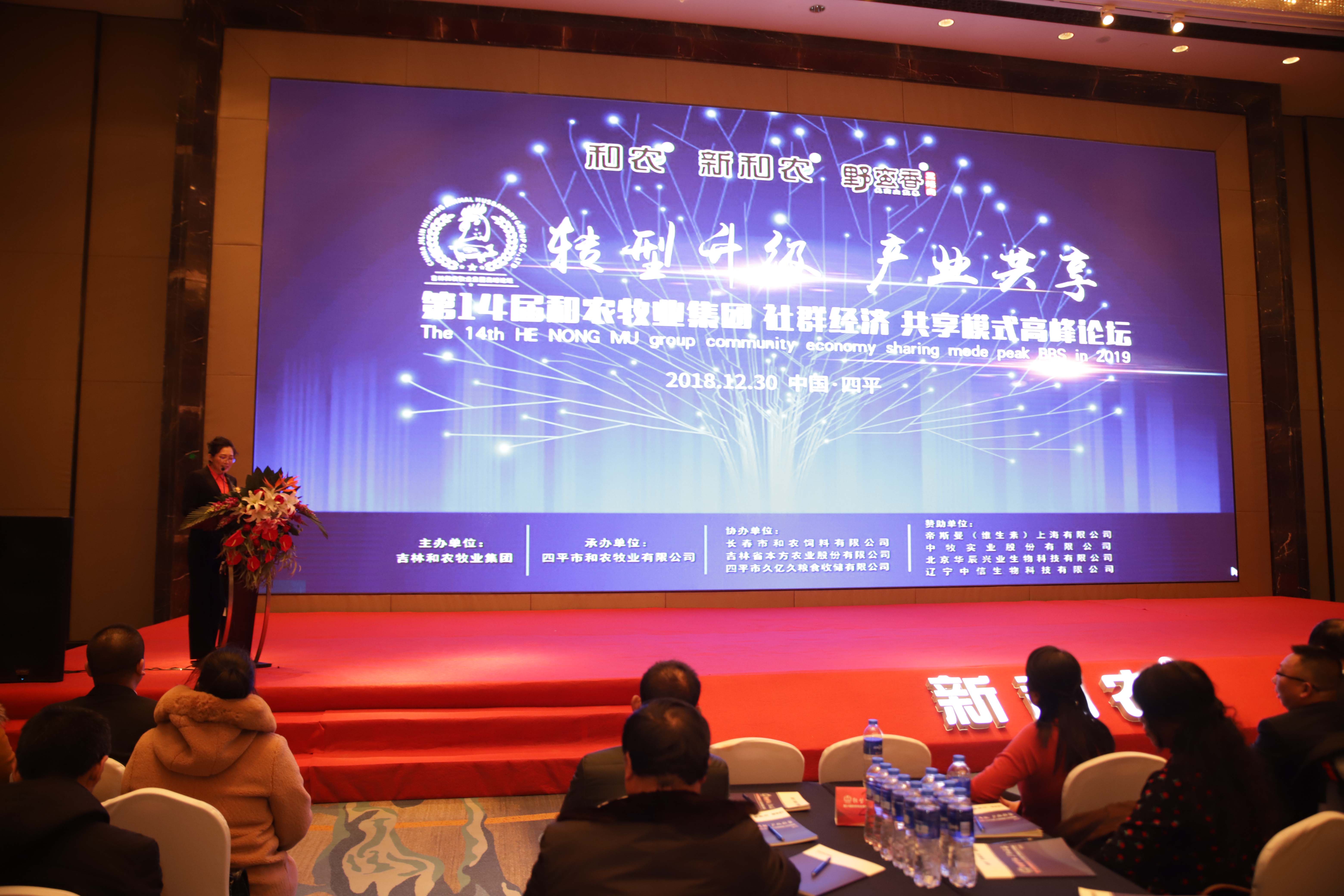 由吉林和農(nóng)牧業(yè)集團(tuán)主辦,四平和農(nóng)牧業(yè)承辦,長(zhǎng)春和農(nóng)、本方農(nóng)業(yè)、久億久糧食收儲(chǔ)協(xié)辦,帝斯曼、中牧實(shí)業(yè)、北京華辰興業(yè)生物、遼寧中信生物贊助支持的 "轉(zhuǎn)型升級(jí) 產(chǎn)業(yè)共享" —— 第十四屆和農(nóng)牧業(yè)集團(tuán) 社群經(jīng)濟(jì) 共享模式 高峰論壇在四平萬達(dá)嘉華酒店隆重舉行。來自東北三省300余位企業(yè)優(yōu)秀代表參加了主題為“轉(zhuǎn)型升級(jí) 產(chǎn)業(yè)共享 社群經(jīng)濟(jì) 共享模式”的高峰論壇。